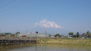 雪と雲がかぶり、さらに空とふもとの富士山がかぶり、なんか不思議な写真ですね・・・
